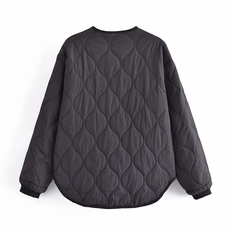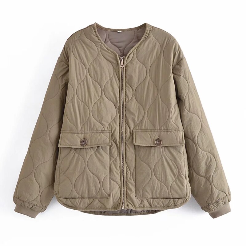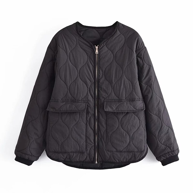 Female Fashion Pockets Zipper Stand Collar Padded Coat